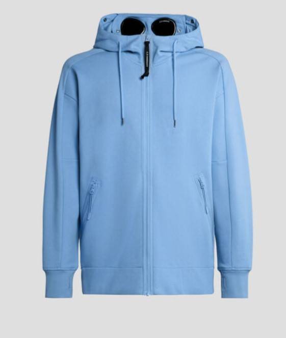 Ce sweat-shirt à capuche présente une fermeture zippée sur toute la longueur, des poches sécurisées en biais pour les mains et la célèbre capuche réglable Goggle Hood de C.P. Company avec ses lunettes intégrées. Modèle confectionné dans notre molleton en relief diagonal, un coton bouclé mi-épais offrant un confort absolu et une grande robustesse.